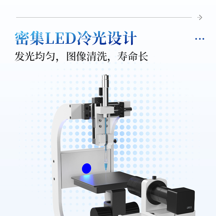 2. 采用工业级密集可调 LED 冷光源系统(寿命25000H 以上) ,保证成像更清晰 , 同 时避免额外热度所导致的小液滴挥发;